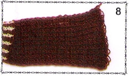 5. Seguir tejiendo en forma de ocho toda la hilera y sacar la primera hilera.